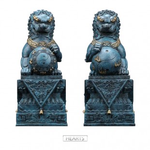 纯铜蓝色看门八卦狮子中式古典入户门厅玄关客厅镇宅风水桌面摆件