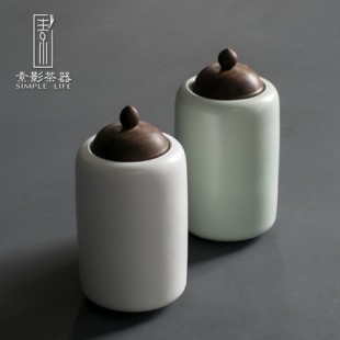 日式创意茶叶罐陶瓷密封罐简约木制盖子存储罐茶道零配茶仓