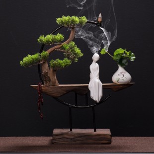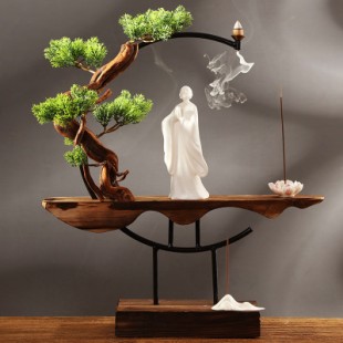 创意倒流香炉家用室内香薰檀香炉陶瓷风化木茶道禅意摆件