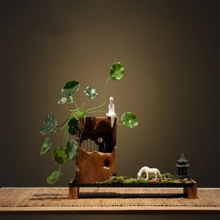 禅意陶瓷流水微景观客厅玄关电视柜招财创意家居装饰品礼品摆件