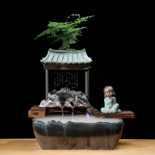 陶瓷流水器摆件循环流水器加湿器鱼缸家居办公室招财摆件古亭静修