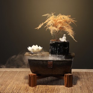 创意茶桌茶几空山流水摆件客厅玄关 书房桌面流水景观摆件加湿器