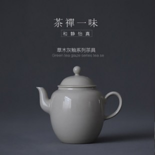 景德镇日式简约手工球孔草木灰釉茶壶 陶瓷如意壶家用茶具