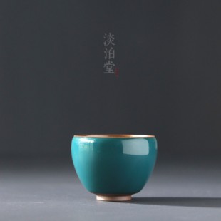 景德镇全手工孔雀绿釉铁胎紫口陶泥陶瓷主人杯 内里汝窑开片可养