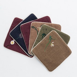 手绘刺绣茶巾棉麻中国风 禅意加厚吸水茶席日式茶布布艺
