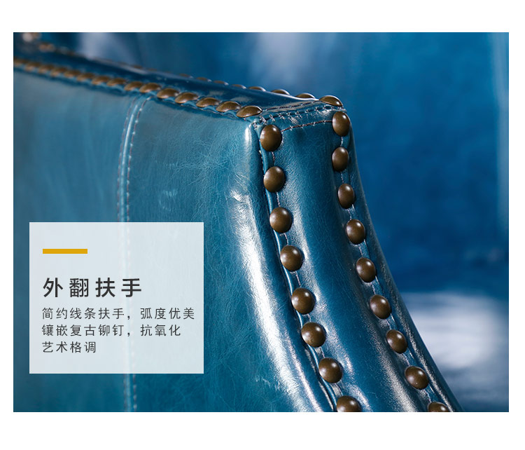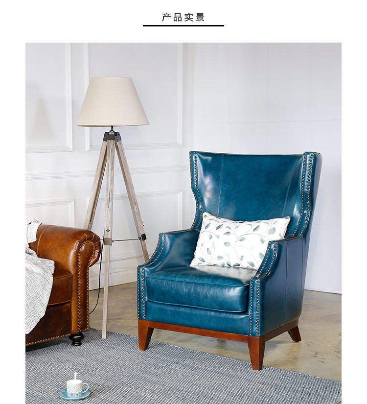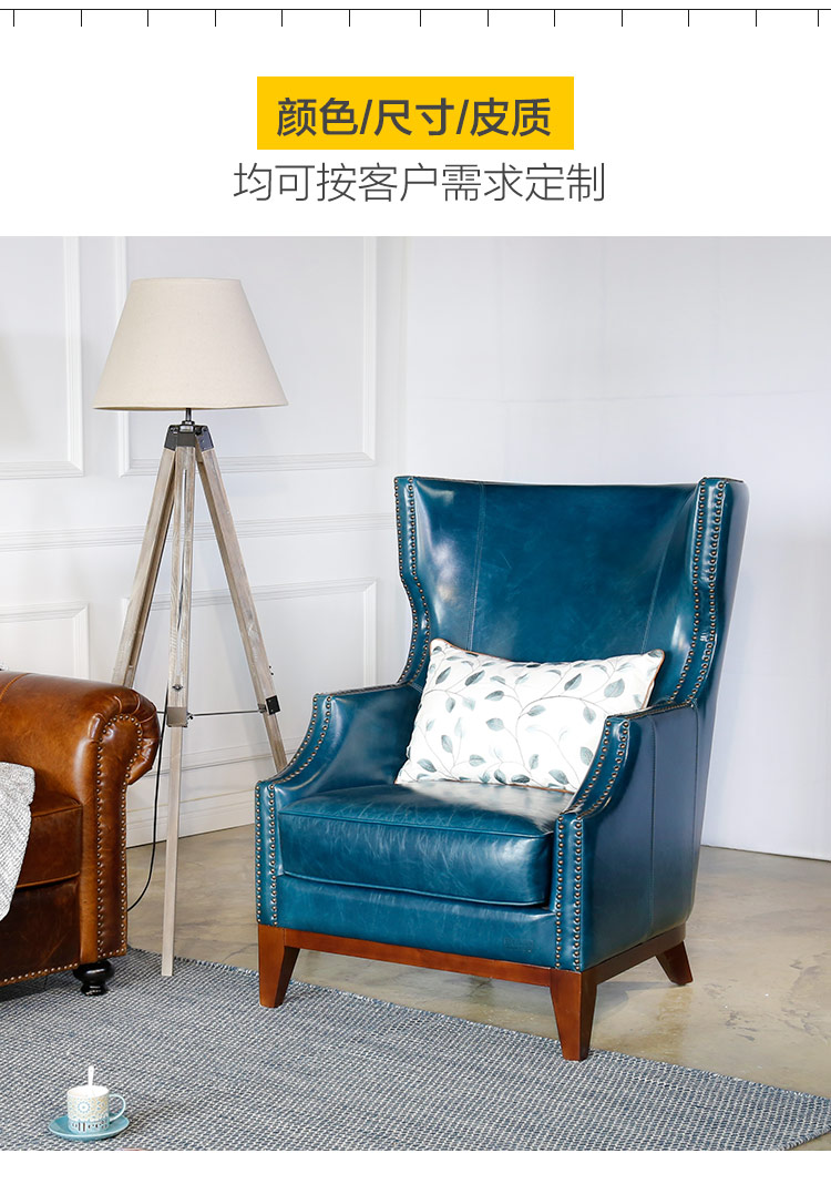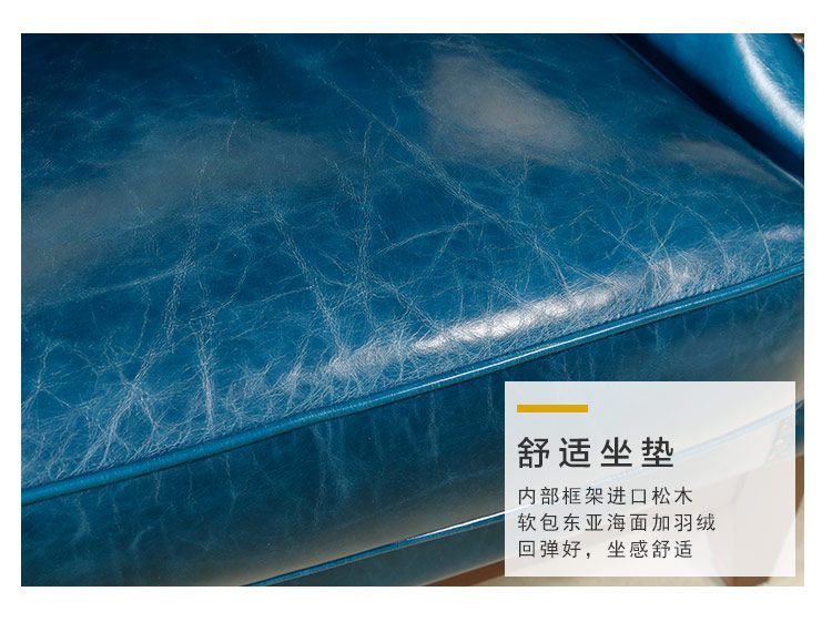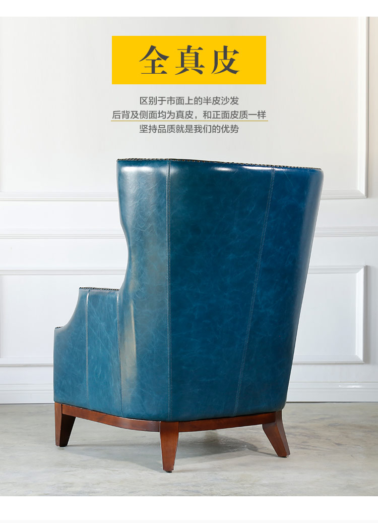 美式真皮 头层牛皮 意大利进口油蜡变皮 单人休闲老虎椅沙发蓝色