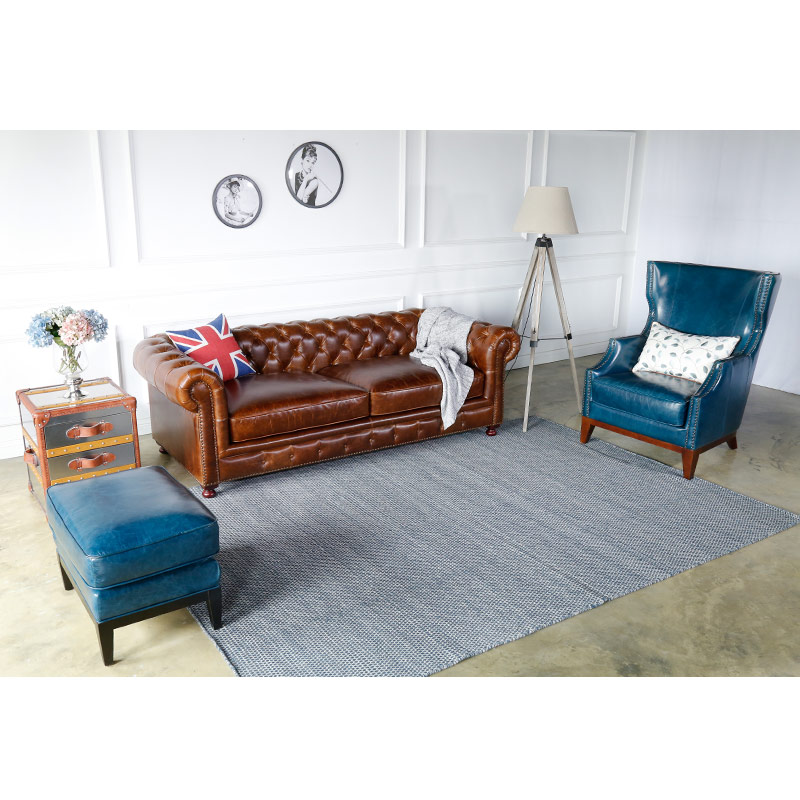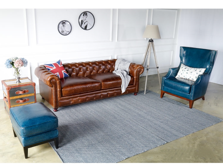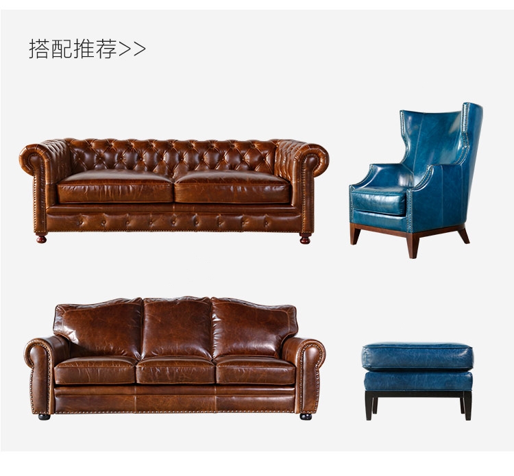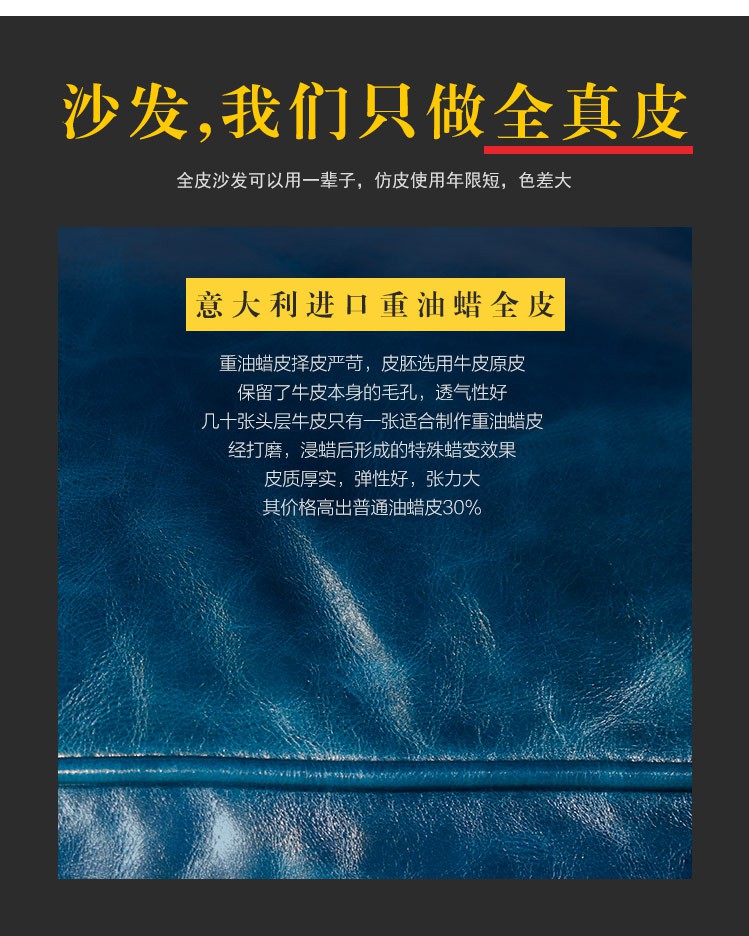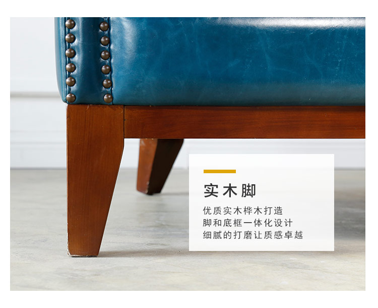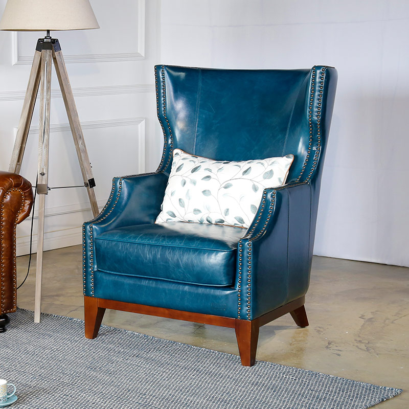 美式真皮 头层牛皮 意大利进口油蜡变皮 单人休闲老虎椅沙发蓝色