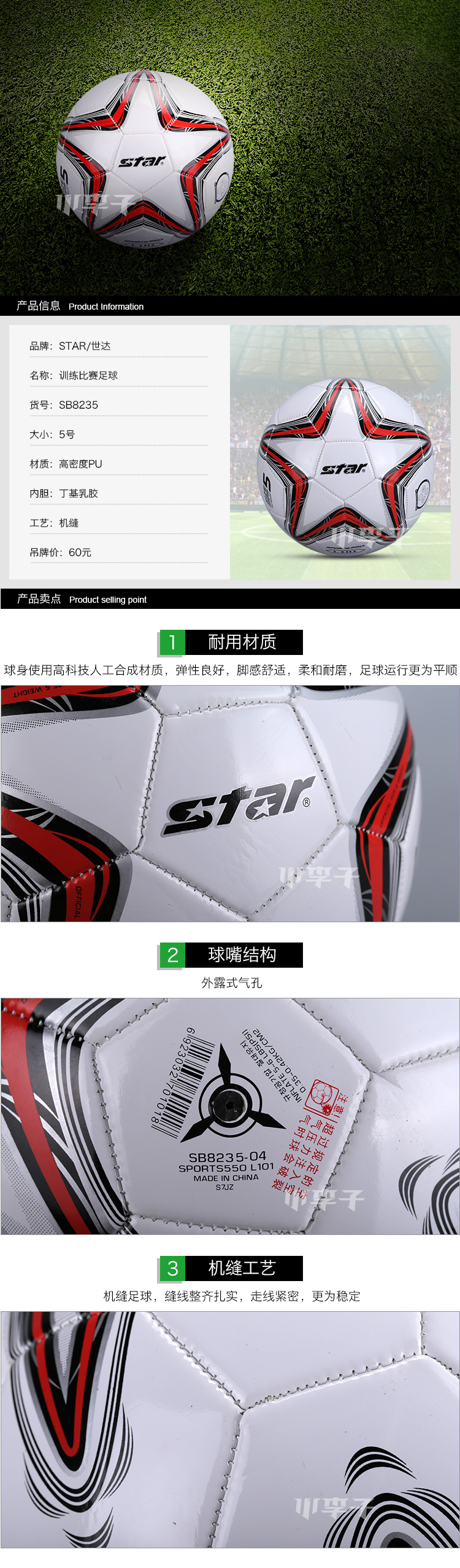 小李子专柜正品STAR世达机缝足球训练比赛专用成人5号足球SB8235