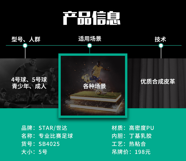 小李子专柜正品Star世达成人5号PU热粘合专业比赛防滑耐磨足球