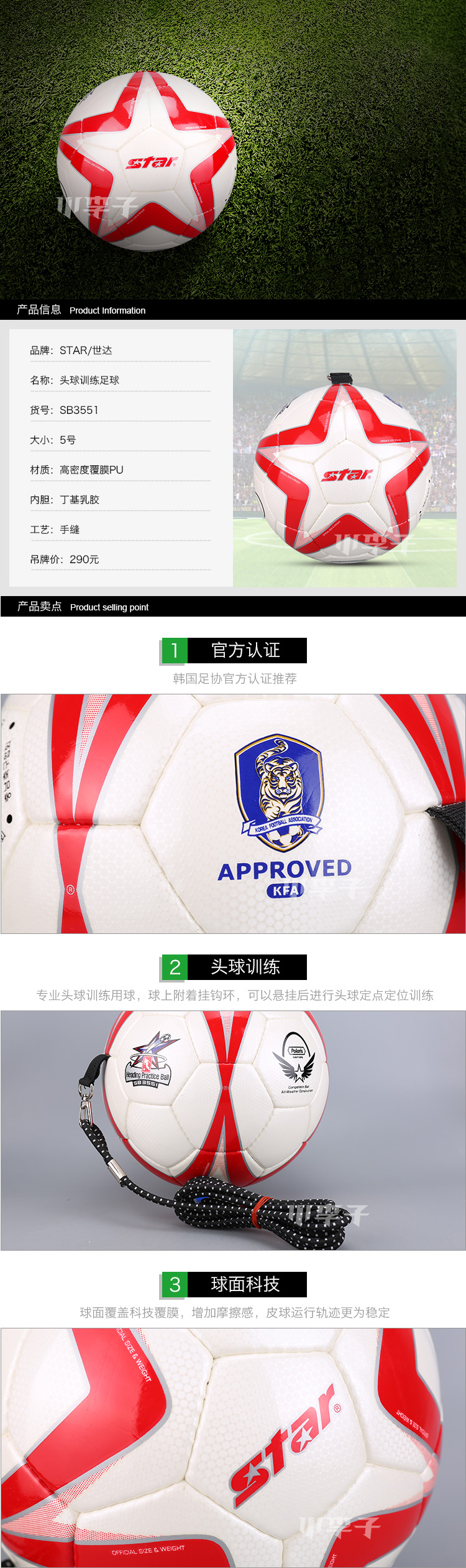 小李子专柜正品STAR世达成人头球训练带绳手缝5号练习耐磨足球男