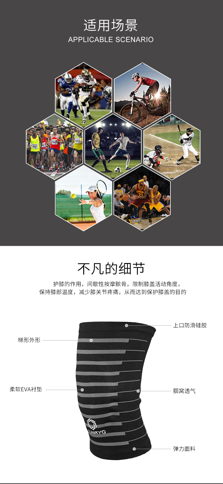 小李子专柜正品蜂锐足球运动骑行健身跑步针织透气弹性男士护膝