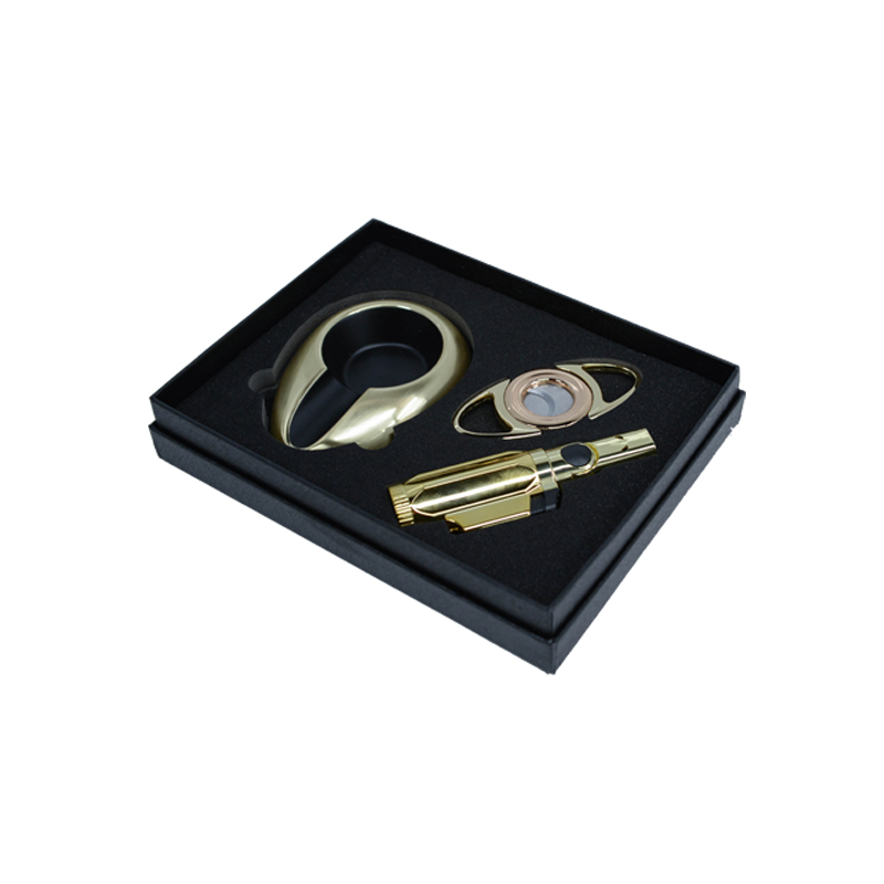 高档茄烟灰缸雪茄打火机雪茄工具三件套装礼盒带雪茄剪刀雪