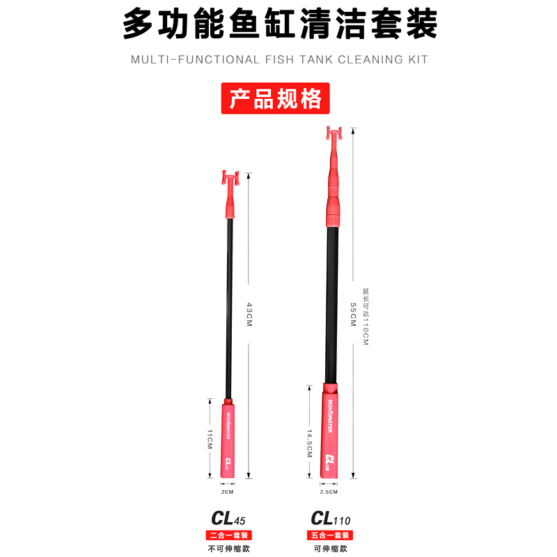 boxwater博特鱼缸刷清洗神器磁力刷五合一清洁工具长柄可伸缩神器