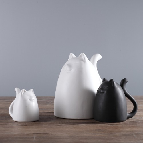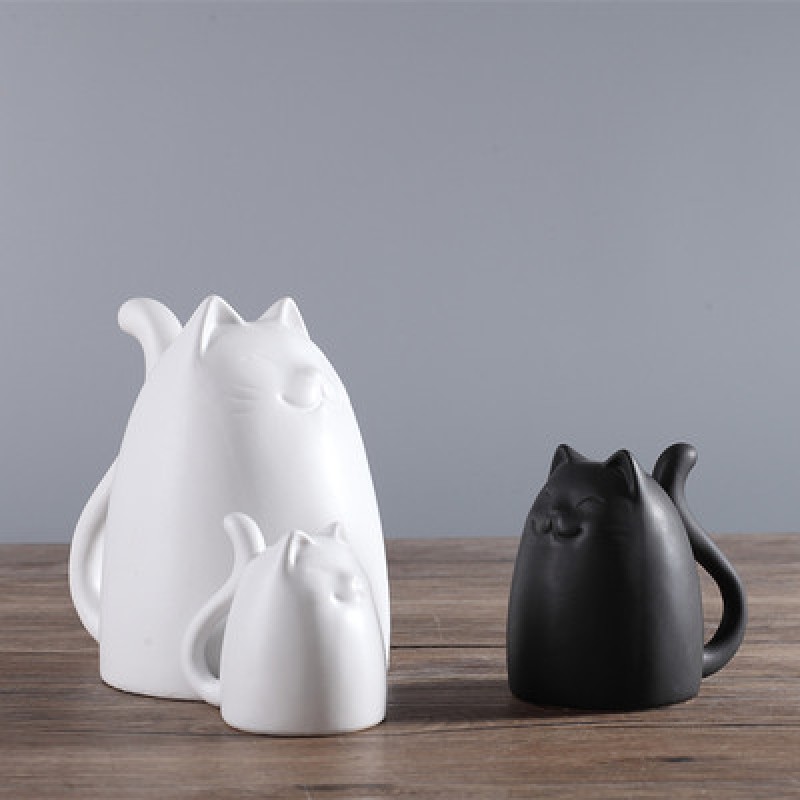 北欧客厅酒柜电视柜装饰品摆件创意陶瓷家居工艺品三口之家猫摆件